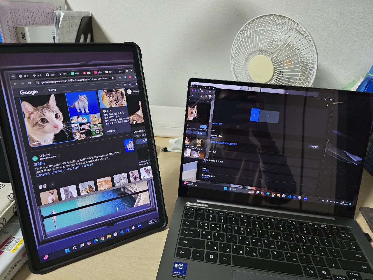 쓰고 있던 태블릿을 필기를 위해서 여전히 놔두는 대신,